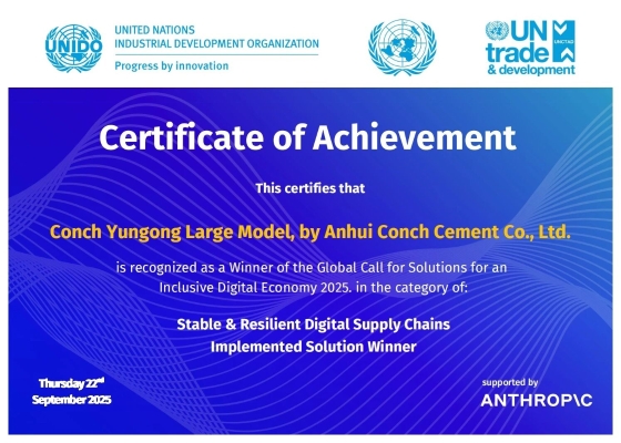 近日,海螺集團下屬“安徽海螺水泥股份有限公司——海螺云工大模型”在聯(lián)合國工業(yè)發(fā)展組織等機構于2025年7月發(fā)起...
